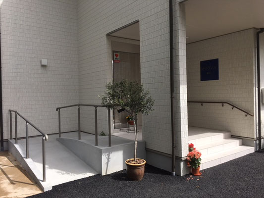 外からはスロープがあるので車いすの方でも安心してご入館いただけます。